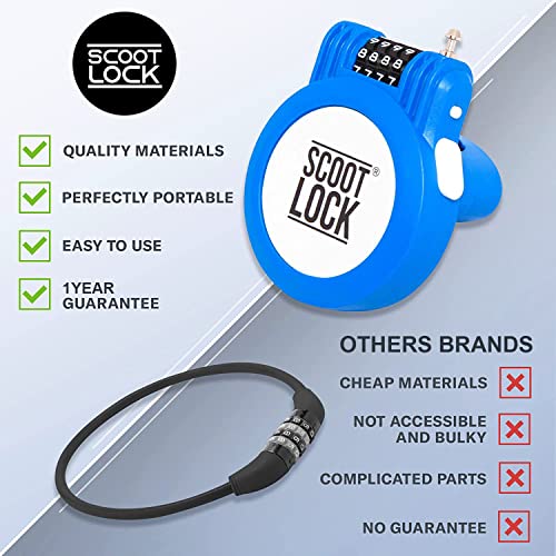 SCOOT LOCK Lucchetto a combinazione portatile per scooter e bici Nuovo lucchetto rinforzato per bicicletta, Micro Trunki Segway Birdie Ozbozz EVO Stoy per bambini e adulti (Blu)(200Gr)