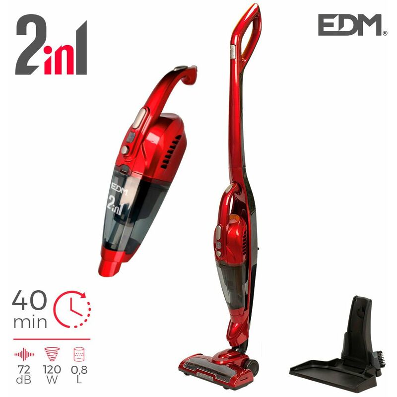 Scopa aspirapolvere 2 in 1 a batteria. 22,2v. motore 120w. batteria: 2200ma. 72db. serbatoio da 0,8 l. con luce a led sulla base. impugnatura ergonomica. base di ricarica per un miglior supporto e due spazzole per piccoli spazi. con un tempo di ricarica di 4h e un'autonomia di 20/40min. controllo della velocità di aspirazione in ogni momento e indicatore led di batteria scarica. progettato acusticamente per assorbire le vibrazioni e mantenere il suono a bassi livelli. ideale per pavimenti e tappeti. l'aspirapolvere manuale è adatto a più superfici. facile pulizia del serbatoio grazie al pratico sistema di apertura. contiene due accessori: spazzola morbida per la testa, un angolo e un accessorio multifunzione. include un pratico punto di ricarica per riporre, caricare e conservare l'aspirapolvere. misure: 30x23,5x118cm (larghezza/profondità/altezza) 220/240v edm