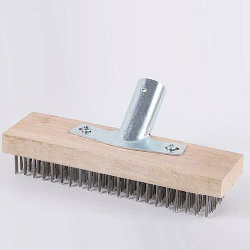 Spazzola in filo d'acciaio profonda 30cm 2,2cm con 6 file di bordi, particolarmente robusta Base zincata per resistenza alla corrosione. Il colore può variare a causa dei diversi lotti La scopa in metallo può essere abbinata ad un manico in legno con un diametro di 2,2 cm. La spessa bacchetta di legno può essere invece tagliata.Ideale per la preparazione della superficie, la pulizia di muschio, sporco e sporcizia da patii, vialetti, asfalto e finitrici.