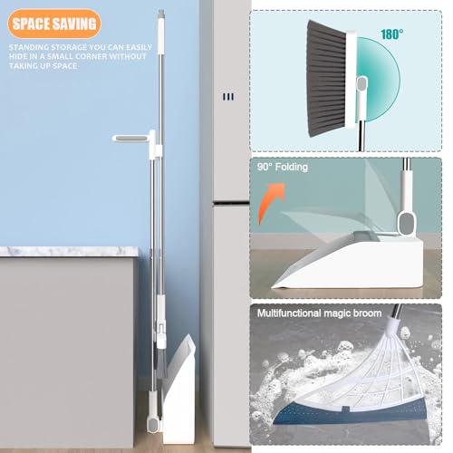 【Scope multiuso】: la testa della scopa può essere regolata con un angolo di 180°. Contenuto della confezione: 1 scopa e 1 set di raschietto magico e paletta.