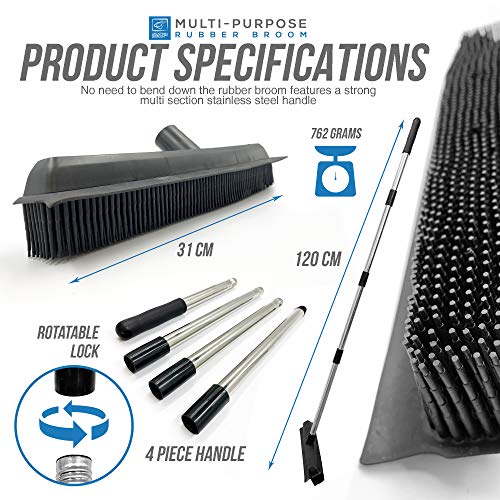 RUBBER BROOM PER LA PULIZIA DEI PELI - Questa scopa silicone è perfetta per attirare e raccogliere i capelli e i peli incastrati in profondità all'interno di tappeti e tessuti. Questo modello è appositamente progettato per chi ha animali domestici in casa.