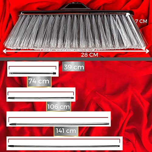 SELEZIONE100 ELEGANTE E LUSSUOSA SCOPA NORMALE KIT COMPRENDE: 1 Scopa Normale + 1 Manico Scopa + 1 Appendiabiti da Parete autoadesivo. Questa scopa classica per interni/esterni è adatta sia per condizioni asciutte che bagnate. Questo kit di scopa per interni con setole morbide e resistenti è ottimo per spazzare e rimuovere lo sporco ostinato e i detriti dai pavimenti sia all'interno che all'esterno della casa.