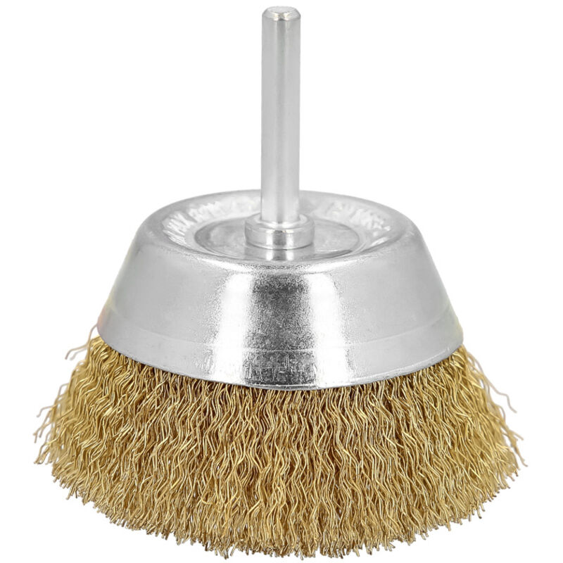 Spazzola a tazza in acciaio ottonato - Diametro: 50 mm. - Punta da 1/4. - Con punte in filo d'acciaio ottonato Ø 0,3 mm. - Utilizzo con normali trapani, massimo 4500 RPM - Ideale per la lucidatura di superfici ossidate in generale, lucidatura di scorie di saldatura, rimozione di vernici, rimozione di piccole incrostazioni in genere.