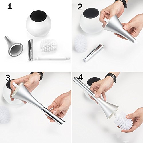 Scopino per WC con base in acciaio INOX 304 + manico in plastica ABS (acrilonitrile-butadiene-stirene) Brush Bead (4 Pack)