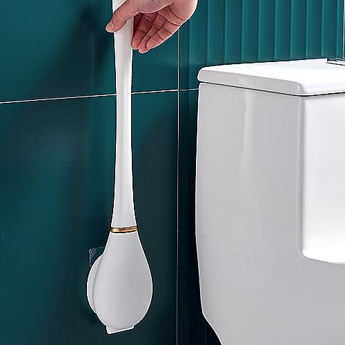 Scopino WC flessibile in silicone, moderno scopino WC per il montaggio a parete senza fori con supporto per asciugatura Chnell, 2023, spazzola per WC in silicone con testa piatta e flessibile,