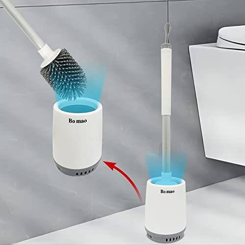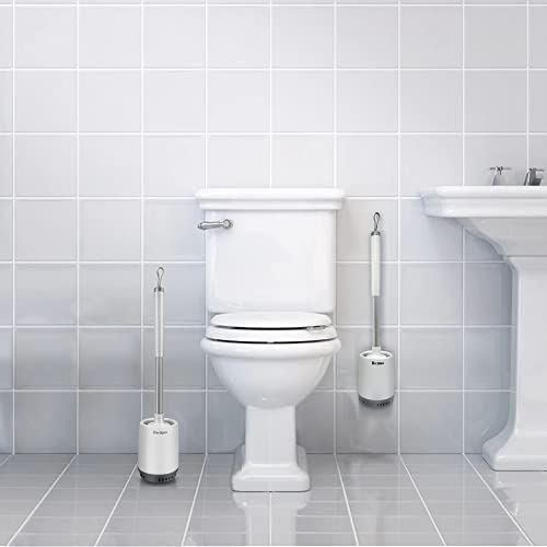 Scopino per WC,2 pezzi Spazzolone WC con Suppoto, Spazzola WC in Silicone,Montaggio Parete/in Piedi, Scopettino WC con Maniglia in Lega di alluminio,Asciugatura Veloce,Setole Flessibili