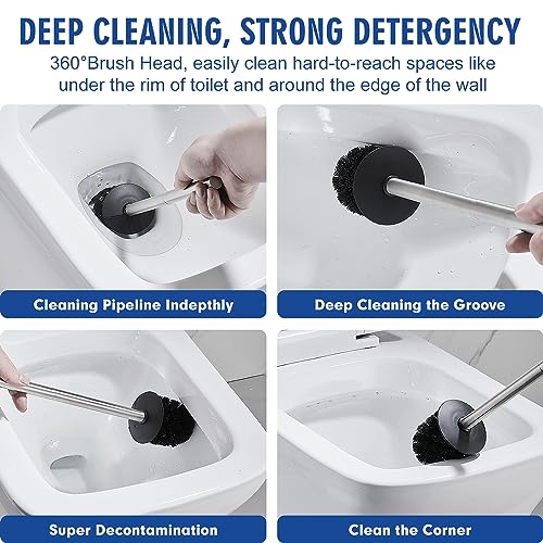 Pulizia profonda: Il nostro scopino per WC con supporto consente di pulire a fondo i punti difficili da raggiungere intorno e sotto il bordo. Spazzolone WC non danneggia il WC e assorbe lo sporco e non cambia la forma e mantiene la pulizia perfetta.