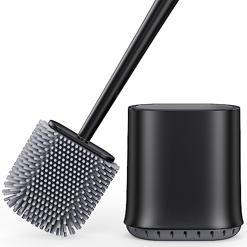 Scopino WC Silicone, Scopino Bagno WC con Setole In Silicone, con Contenitore Per il Bagno con Supporto ad Asciugatura Rapida, Porta Scopino Per La Pulizia Profonda (Negro_1 Pack)