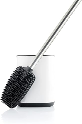Scopino in silicone con porta scopino e manico lungo in acciaio inox. Igienico, flessibile, moderno, elegante e stabile. raschietto con lamelle. Per bagno e toilette - bianco