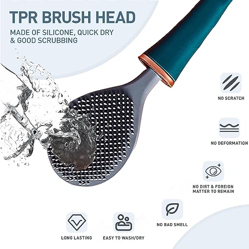 【Materiale di alta Qualità】Lo scopino wc silicone è realizzato in PP di alta qualità, non fa pelucchi, non si usura e non si deforma, è durevole. La testa morbida e flessibile in TPR dello scopino wc è progettata per la pulizia profonda sotto il bordo del wc e in altre aree difficili da raggiungere, la testa dello scopettino bagno può essere piegata per pulire in profondità i bordi, le fessure e i fori interni della tazza del wc senza danneggiare la tazza stessa.