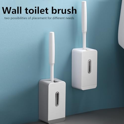 Scopino per WC, Spazzolone WC Silicone, Scopettino WC con Supporti ad Asciugatura Rapida, Scovolino WC in Silicone Morbido, Montaggio Parete/in Piedi, Set di Spazzole per WC in Silicone