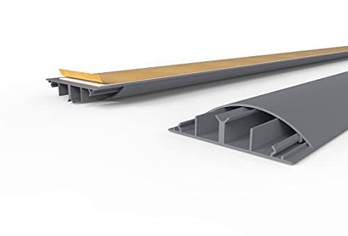 Canale per installazione cavi con fori sul pavimento e autoadesivo (nastro adesivo in schiuma molto resistente) per montaggio a parete e soffitto (può anche essere avvitato otticamente).