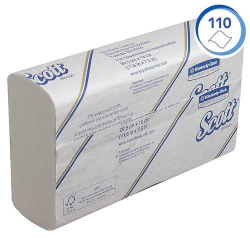 Scott Slimfold Asciugamani intercalati 5856, 1 velo, strappi più compatti e robusti, 16 confezioni x 110 asciugamani di carta (totale 1760)