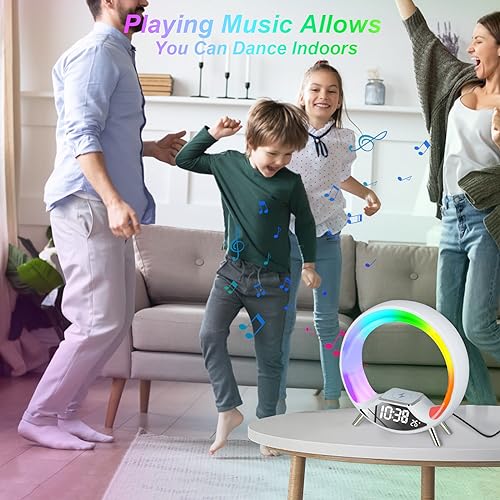 【Atmosfera di illuminazione soffusa】Sveglia con luce dell'altoparlante del caricabatterie, lampada da comodino a LED con orologio, la luminosità può essere regolata facendo clic sul pulsante in alto. Abbiamo impostato tre livelli di luminosità, puoi facilmente creare l'atmosfera luminosa che desideri. Allo stesso tempo, la luce della nostra lampada da comodino a LED con orologio cambia automaticamente al ritmo della musica
