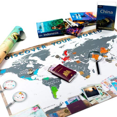 Scrape Map - Mappa del mondo Deluxe da grattare, in alluminio, colore: bianco