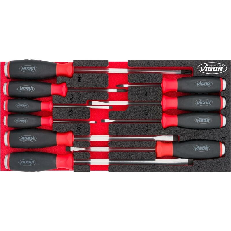 2-component soft foam insert Insert measurement / drawer size: S (188 x 393 x 35 mm) VIGOR 2-Alloggiamenti in espanso morbido per componenti Facile da pulire: sciacquare sotto acqua corrente e asciugare Rapida individuazione degli utensili mancati grazie al vano rosso Tutto al proprio posto per un perfetto ordine Protegge gli utensili grazie ad un posizionamento antiscivolo Ogni utensile ha il suo posto predefinito Resistente a oli e grassi Presa di forza: Profilo ad intaglio, Profilo intaglio a croce PH Dimensioni / Lunghezza: 393 mm x 188 mm x 35 mm Insert measurement / drawer size: S (188 x 393 mm) Altezza 35 Larghezza 188 Lunghezza (cavo) 393 Unità di uscita Schlitz Profil, Kreuzschlitz Profil PH Dimensioni dell'imballaggio 1 Contenuto della fornitura V3601, V3602, V4667, V3597, V3598, V3599, V3600, V5042, V5043, V5044