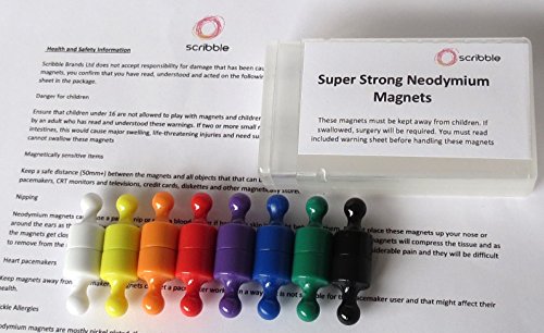 Scribble Magnete, Extra Resistente, di forma conica, 12 X 20 mm, magnete per l' ufficio e frigo, 16 pezzi, colori assortiti