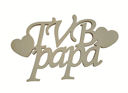 Scritta tvb papa' con cuori, in legno di pioppo per il fai da te,dimensione cm L 27 x 17 h spessore 8 mm. Superficie levigata e liscia pronta ad essere dipinta e colorata .