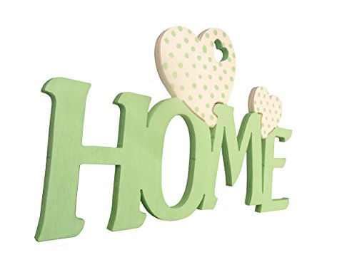 Scritta in legno home con cuore cm L 30x 18 h spessore 8 mm (verde acqua con cuore a pois)