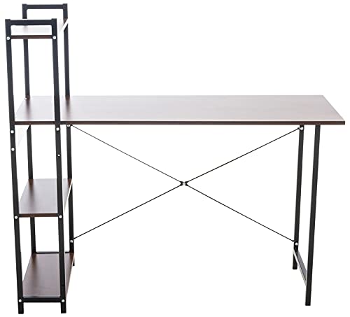 CLP Scrittoio Poe Look Industriale I Scrivania Stile Rustico con Ripiano Estraibile Realizzato a Mano I Scrittoio Studio con Mensole, Colore:Noce