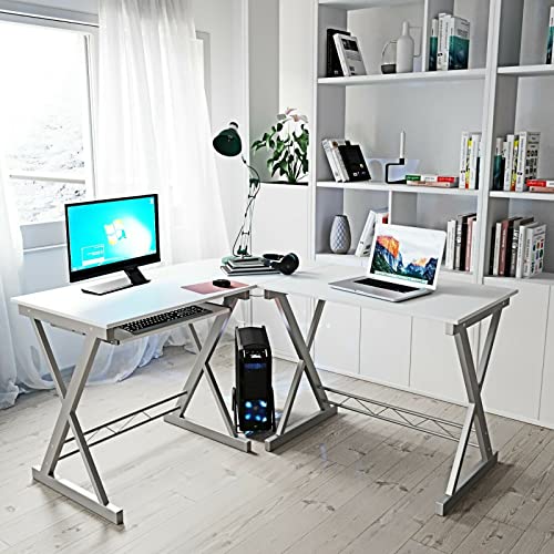 Scrivania Ad Angolo Per Computer Con Ripiano Scorrevole Per Tastiera, Mobile Desk Da Ufficio Porta PC Safford Per Ufficio Gaming Gamer Soggiorno Sala Da Pranzo Studio 150 x 38 x 75 cm (Bianco)