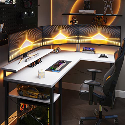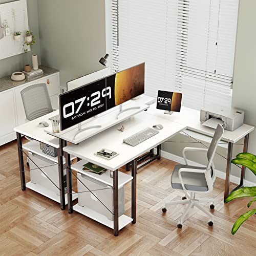 ODK Scrivania ad angolo con supporto per monitor regolabile in altezza, scrivania ad angolo reversibile con ripiano e supporto per CPU, scrivania a L facile da montare (White)