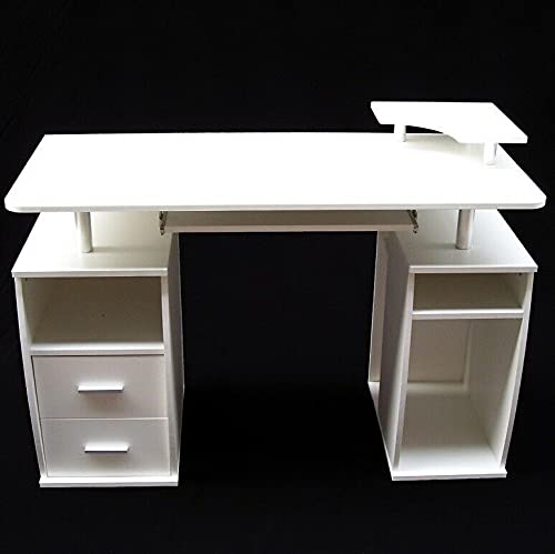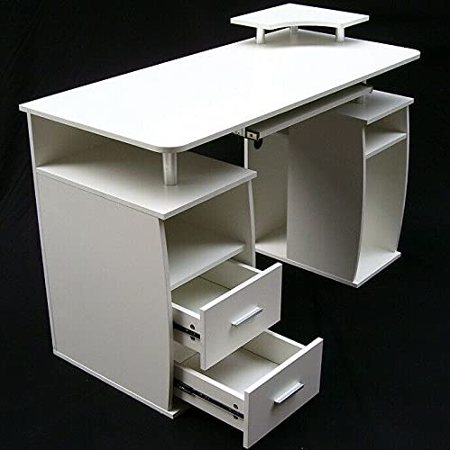 Scrivania ergonomica per computer con cassetti, scomparto per tastiera, scomparto per stampante e scomparti portaoggetti