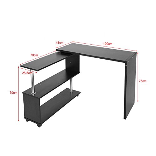 【Grande spazio di archiviazione】: Scrivania Computer Pc con Libreria La dimensione totale della scrivania è di circa 100 x 48 x 75 cm,Dimensioni della scrivania laterale flessibile 70 x 25,5 x 70 cm. La scrivania angolare che consente di posizionare il computer, le piante, la cornice per foto e gli accessori. Inoltre, ci sono 2 ripiani girevoli a 360 gradi, puoi conservare i tuoi dischi, i tuoi libri, i tuoi CD e altri oggetti.