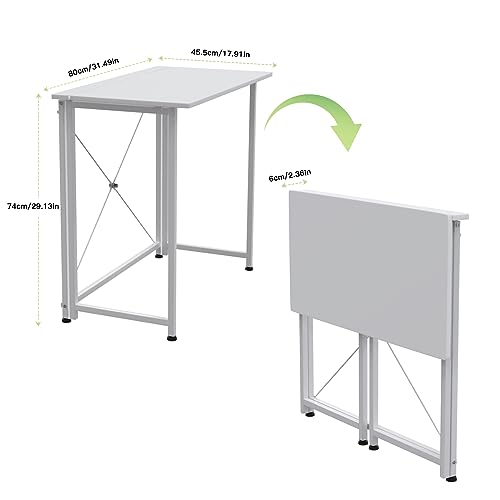 Scrivania Computer Pieghevole, Tavolo Pieghevole da Esterno ed Interni, 80x45,5x74cm Tavolino Pieghevole Piccolo, Tavoli Campeggio Pieghevoli, Scrivanie, Scrittoio Bianca per Ufficio Lavoro Studio