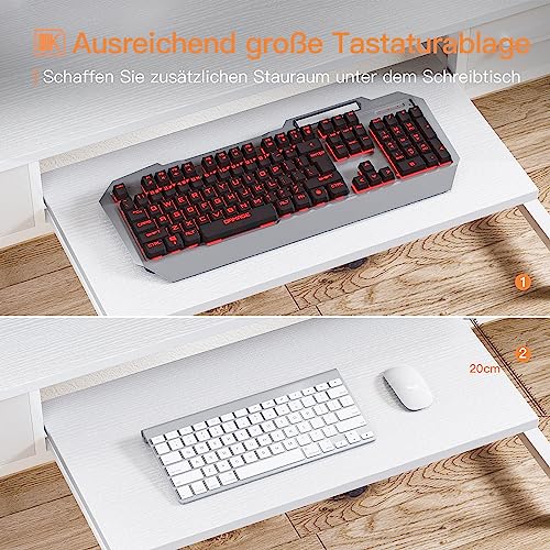 【Scrivania con vassoio per la tastiera】Degno di nota! A differenza delle normali scrivanie, non è necessario aggiungere un vassoio per la tastiera, poiché questa scrivania per ufficio possiede un vassoio per la tastiera estraibile di 61cm di larghezza. È adatto per una tastiera full size da 108 tasti o 87 tasti con l'aggiunta del mouse. Il vassoio della tastiera può proteggere la tastiera dalla polvere. Può essere utilizzato anche come cassetto portaoggetti per risparmiare spazio.