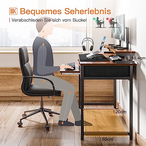 ODK Scrivania per Computer con Vassoio per la Tastiera, Scrivania da Ufficio con Supporto per Monitor, Scrivania con 2 Cassetto, Scrivania per Ufficio e Casa (140x48x87cm, Brown)