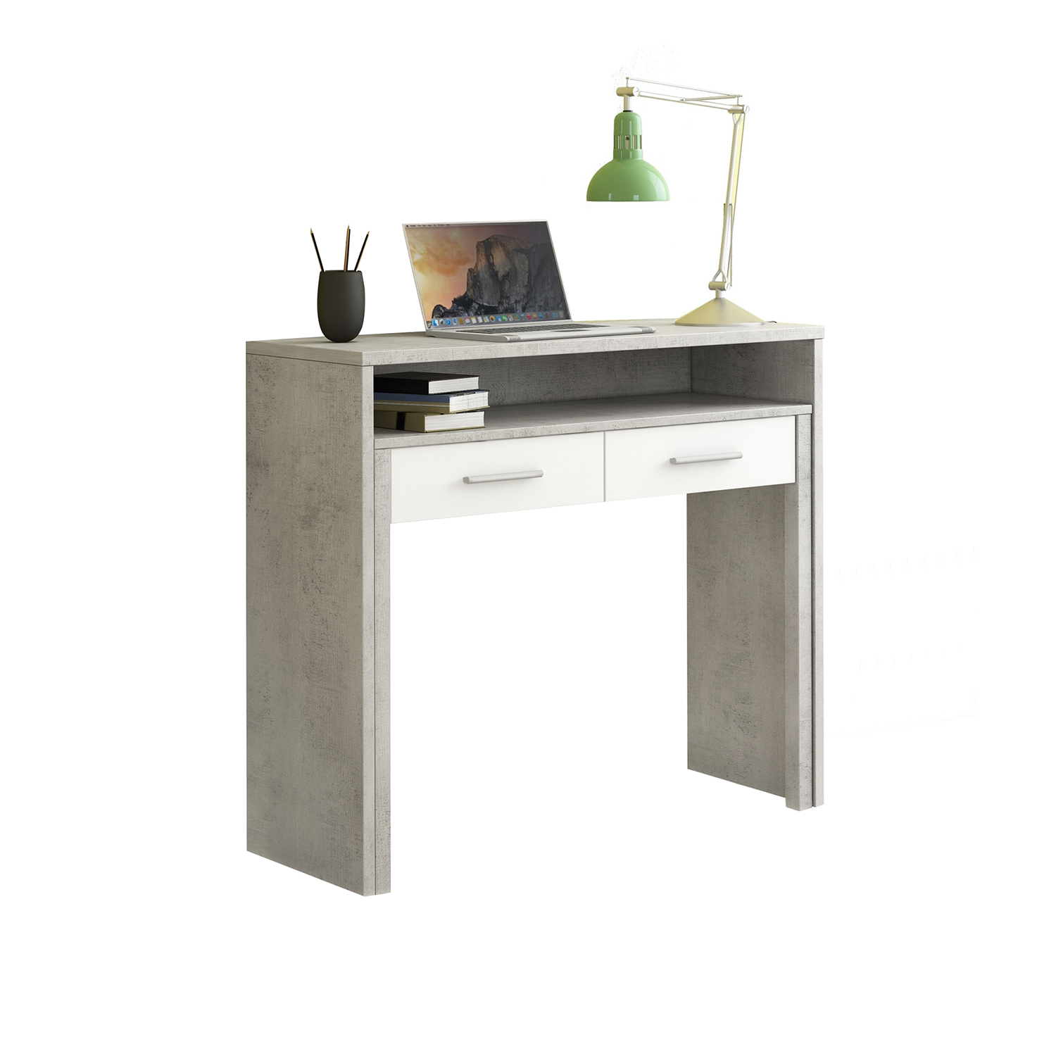È sempre utile avere un pezzo come Richmond di OresteLuchetta, brand del gruppo Tomasucci. Un'elegante e funzionale consolle che all'occorrenza si trasforma con un semplice movimento. La parte inferiore, infatti, può essere estratta per far diventare questo mobile una comoda scrivania! Ancora più sorprendente grazie ai 2 cassetti di cui è provvista, è realizzata con pannelli ecologici di particelle di legno. La struttura è rivestita in melamminico con finitura cemento. I cassetti sono rivestiti in melamminico con finitura larice bianco a poro aperto. Dimensioni: 99x88x36/66 cm. Nella confezione troverai le istruzioni per un assemblaggio semplice e sicuro.