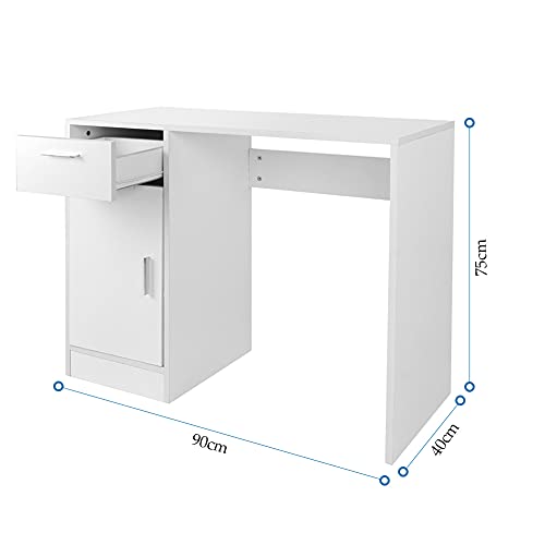Scrivania Moderna, Tavolo da Gioco Tavolo da Computer Professionale con Materiale Truciolare, Tavolo da Lavoro Tavolo da Ufficio 1 Cassetto e 1 Porta Adatto per Lavoro, Ufficio a Casa Moderno (bianca)