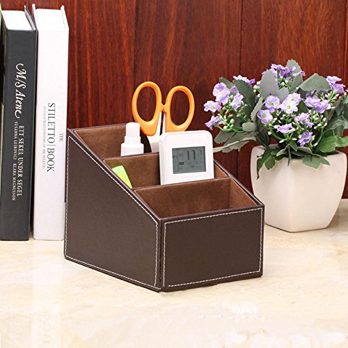 Pu Scrivania Organizzatore Telefono Telecomando Di Immagazzinaggio Del Supporto Della Cancelleria Box-marrone