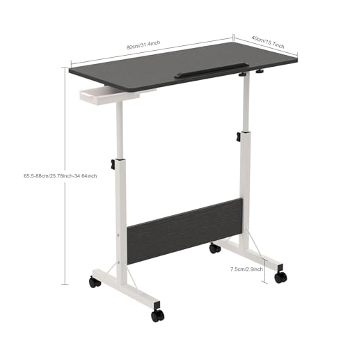 Scrivania Pieghevole per Computer Regolabile in Altezza 65-88 cm,Tavolo Pieghevole Salvaspazio Tavolino con Ruote 80x40cm Scrivanie per Ufficio, Camera da Letto, Divano, Soggiorno Esterno Interni,Nero