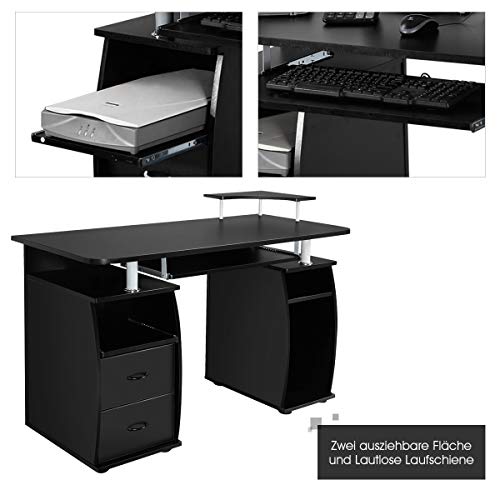 FDS Scrivania da ufficio/studio con ripiano per stampante, piano estraibile per tastiera, 2 cassetti e scomparto per computer fisso, vari colori nero