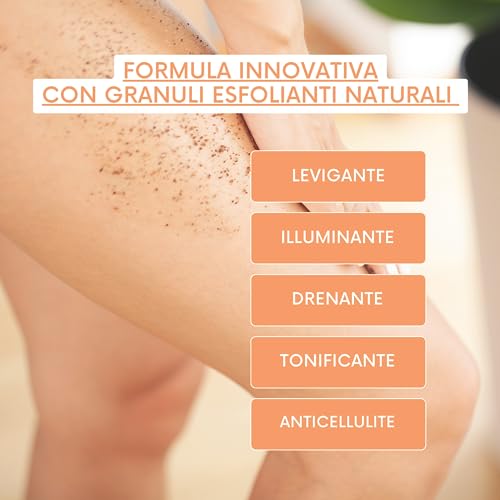 Scrub Corpo Esfoliante | Idratante e Rigenerante, Rimuove le Cellule Morte ed Uniforma l'Incarnato | Azione Anticellulite con Granuli Vegetali e Garcinia Cambogia anche per pelli Sensibili | 220mL