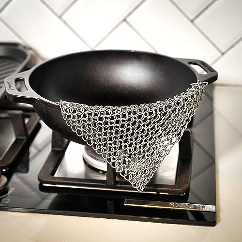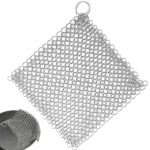 Scrubber Cotta Maglia, Cleaner Maglie Ghisa Detergente Ghisa Acciaio Inossidabile, Scrubber Acciaio Inossidabileper Padella, Wok, Pentola 7 x 7 Pollici Quadrato