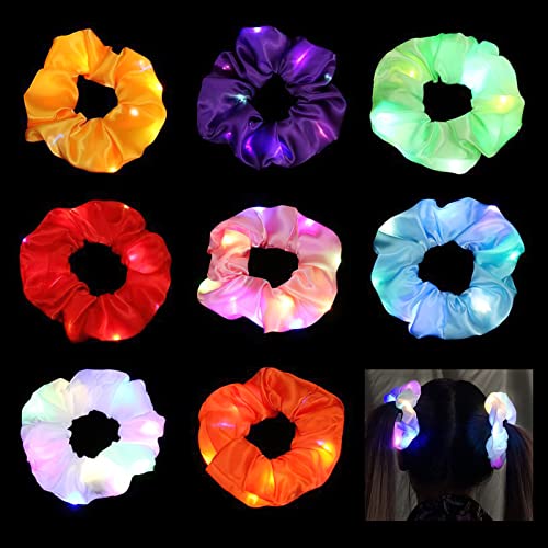 Scrunchies Capelli con Luce LED: YOYIAG 8 pezzi elastici per capelli che si illuminano al buio, 3 modalità di luce Fasce elastiche per le donne Copricapo al neon Festa