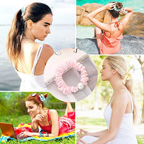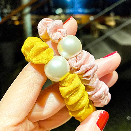 Bella decorazione per capelli: La nostra cravatta per capelli ha 2 colori diversi, due colori sono molto avanzati e belli. Anche l'elastico per capelli Scrunchies viene fornito con una perla luminosa. Usa le fasce per capelli per decorare i tuoi capelli e rendere la tua pettinatura più attraente.