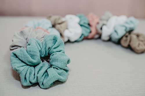 3 Scrunchies in mussola - Set di 3 Scrunchies in cotone - elastici per capelli in tessuto - cuciti a mano (rosa chiaro/rosa antico/palissandro)