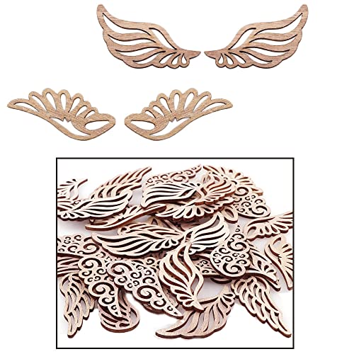 Sctmda Fette di Legno con Ali in Legno 80 Pezzi Decorazione in Legno a Forma di Ali D'angelo Naturale Legno Ali d'Angelo Ritagli di Legno Dischi Legno Fette Legno per Fai da Te Matrimonio Decorazione