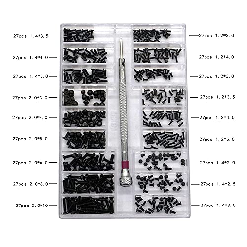 Sctmda Scatole Micro Viti Set 500 Pezzi Micro Viti Nero con Cacciavite Viti di Riparazione Micro Viti per Occhiali Kit di Strumenti di Riparazione Micro Viti per Occhiali Orologio Laptop Riparazione