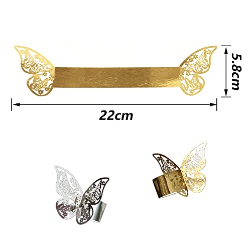 Farfalla portatovagliolo: il set contiene 50 Farfalla portatovagliolo, disponibili in due colori: argento riflettente e oro riflettente. Ci sono 25 portatovaglioli in ogni colore.