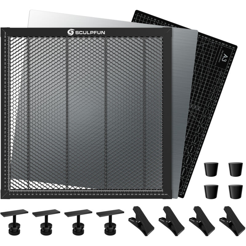 Caratteristiche: ?? Accessori necessari per il taglio laser: dopo aver utilizzato un banco da taglio laser per tagliare legno, acrilico e altri materiali, i bordi del legno sono puliti e puliti e non è facile essere ingialliti dal fumo e un lavoro di taglio pulito può essere ottenuto. ?? Area a nido d'ape standard 400x400 mm: l'area esterna è 450x450 mm e l'area di lavoro dell'area a nido d'ape è 400x400 mm, fornendo un'area di utilizzo più efficace. ?? Morsetti metallici professionali: il pannello a nido d'ape SCULPFUN fornisce morsetti metallici dal design unico, inclusi morsetti metallici ad alta resistenza e morsetti a forma di T, che possono facilmente bloccare il legno curvo o persino le piastre metalliche per mantenere piatta la superficie scolpita. ?? Design osservabile per il taglio: il pannello a nido d'ape SCULPFUN ha un design di osservazione del taglio molto conveniente. Quando il laser taglia il legno o l'acrilico, la piastra di supporto in metallo nella parte inferiore