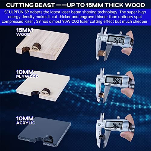 SCULPFUN S9 Incisore Laser Legno - 90W Effetto Macchina Taglio Laser, Macchina Taglio Laser Incisore per Incisione Laser Metallo, Laser per Legno, Metallo, Acrilico, Area di Lavoro 410 x 420 MM