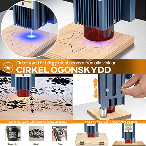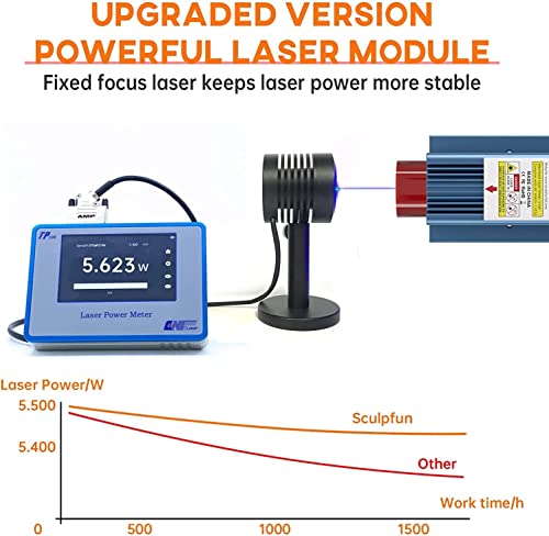 【Taglio ad alta energia e raggio laser ultra fine】 S9 utilizza l'ultimo laser a diodi con tecnologia di modellazione del raggio laser da 5 W, ha un punto di messa a fuoco laser compresso nitido da 0,06 * 0,06 mm e una precisione di incisione di 0,01 mm. Può tagliare legno fino a 15 mm di spessore, 10 mm di acrilico, 10 mm di compensato, incisione su ceramica.