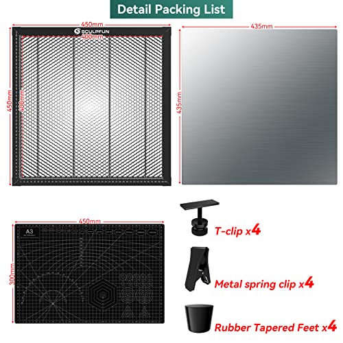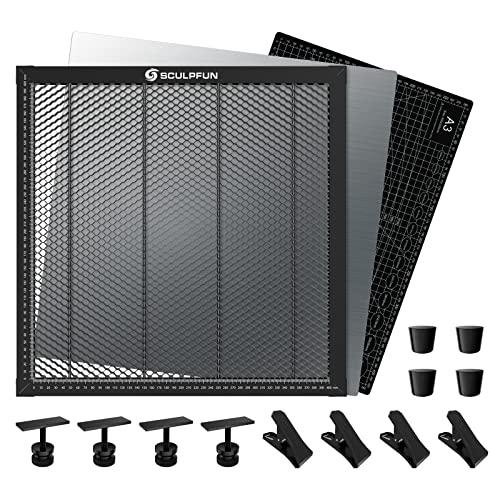 SCULPFUN Laser Honeycomb tavolo da lavoro 400 x 400 mm per macchina per incisione laser - tavolo da lavoro a nido d'ape laser con piastra in alluminio, clip in metallo a forma di T, piedini conici