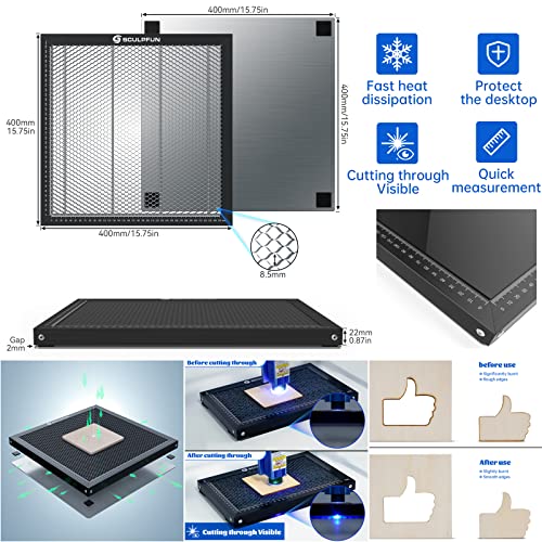 Rullo di rotazione laser e piastra a nido d'ape laser: il rullo SCULPFUN regola la dimensione dello spazio tra i due alberi facendo scorrere. Devi solo collegare il connettore cavo dell'asse Y della macchina per incisione laser per incidere oggetti cilindrici come penne o bottiglie d'acqua, ecc. Il design a nido d'ape può assorbire il fumo, il materiale non è facile da diventare nero o giallo, rende il materiale bordi puliti e lisci, dandoti una bella possibilità di ottenere lavori di taglio.
