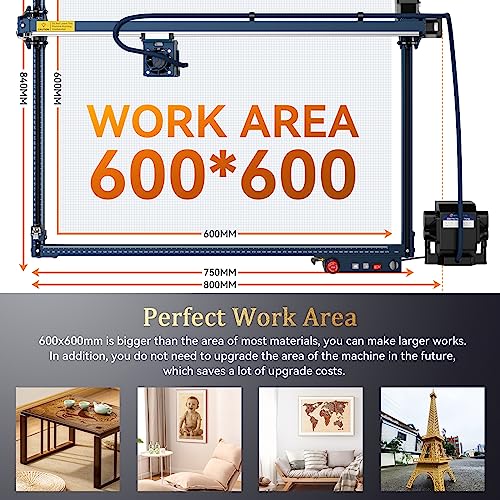 600 x 600 mm Superficie di incisione: la superficie di incisione effettiva è di 600 x 600 mm, il che significa che molti dei tuoi lavori non sono limitati dalla superficie e consente di realizzare la maggior parte dei lavori di taglio di grandi dimensioni. La serie S30 è realizzata in lega di alluminio ad alta resistenza, il telaio può essere utilizzato a lungo e mantiene un'elevata precisione. Se la macchina deve essere aggiornata, basta aggiornare il laser più recente.